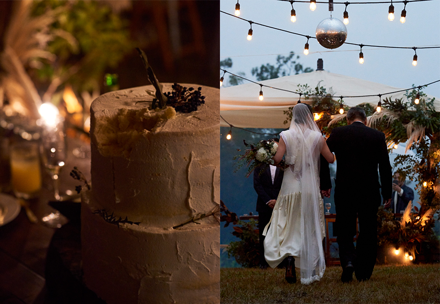 屋外での本格的なウェディングパーティは、「旅するアウトドアホテル"The Caravan"」を運営する株式会社Wonder Wanderersさんのプロデュースにより素敵な会場になりました。 目に入るのは広大な自然だけ、夕暮れ時から始まったパーティはまるで海外の映画のワンシーンのようでした。